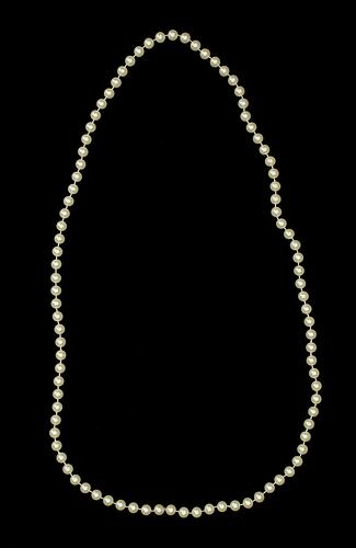 Single strand, irregular shaped, pearl necklace worn by Bernice Kopple possibly as part of one of her cabaret acts between the 1960s and 1970s. Bernice migrated from Scotland to Australia in 1950.