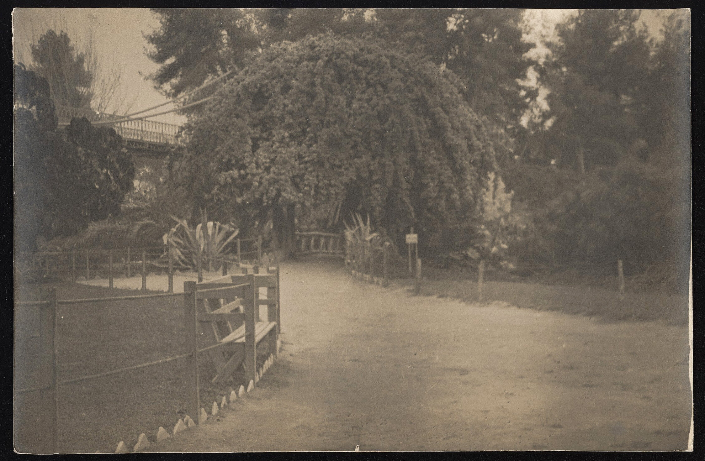 Hand written in purple pencil on the back of the photograph; 'Zoological Gardens / (Bougainvillia[sic]) / (a glorious bla[illeg] of colour) / March 1915 / Mena / Cairo / Egypt'