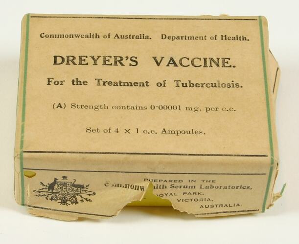 Label: Commonwealth of Australia. Department of Health./DREYER'S VACCINE/For the Treatment of Tuberculosis./(A) Strength contains 0.00001 mg. per c.c./Set of 4 x 1 c.c. Ampoules.