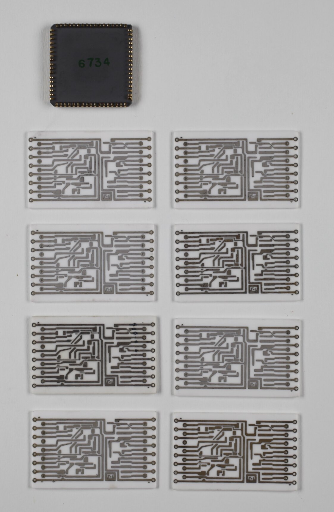 Unused thick films used in association with constructing the prototype receiver-stimulator, bionic ear research, University of Melbourne. Includes a later unidentified integrated circuit from 1980s.