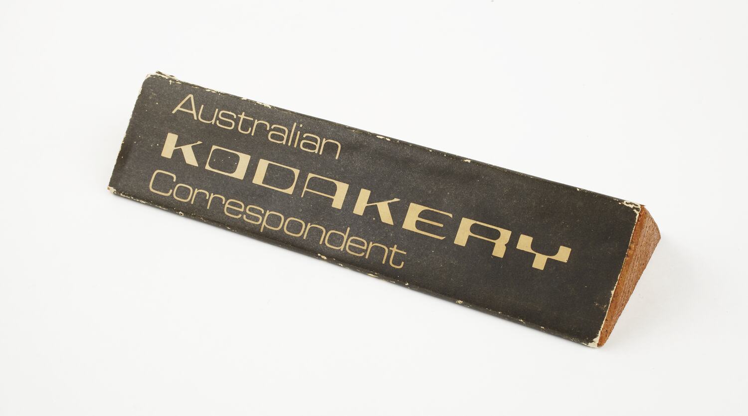 Desk sign belonging to Ron Williamson while he was working at Kodak Australasia Pty Ltd, circa 1980s. Ron performed the role of Australian Kodakery correspondent on top of his usual job.