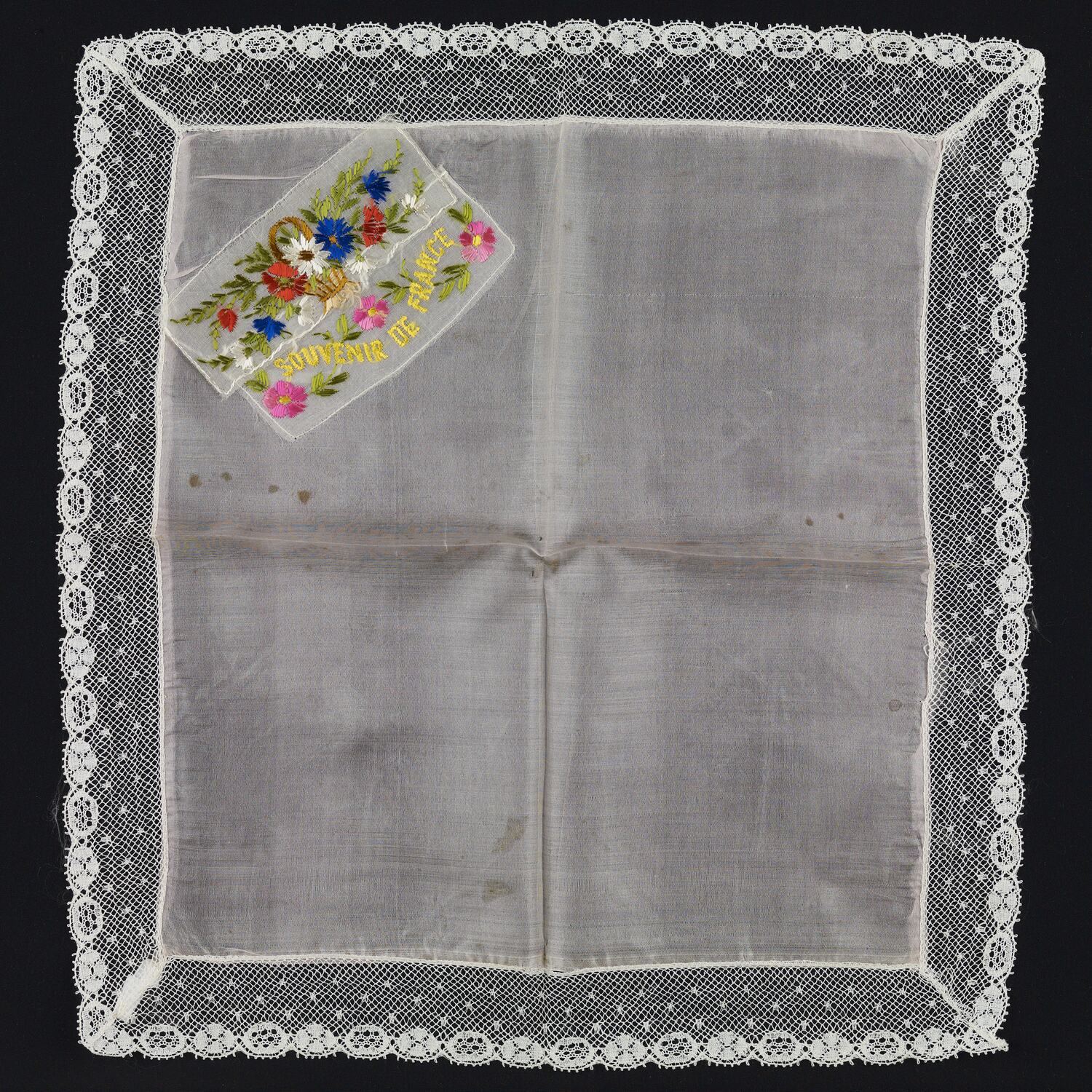 Handkerchief produced in France during World War I, for sale to military personnel stationed there to send back to their relatives.