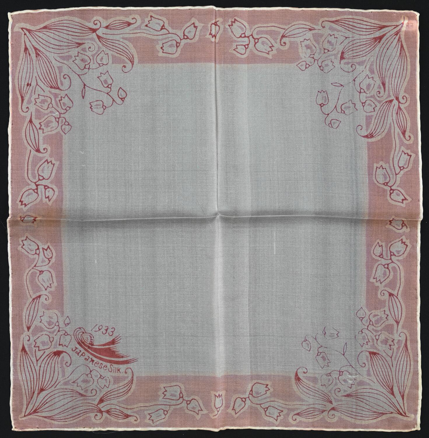 This silk handkerchief was produced by artists in the Japanese Pavilion at the Chicago World's Fair in 1933.