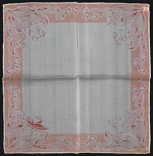 It belonged to Emily Hannah Francis, of Garden City, and was part of a collection of 145 souvenir and commemorative handkerchiefs put together by Emily, sent to her by pen friends from around the world, up to her death in 1943.