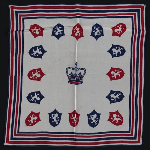 Handkerchief produced to commemorate the upcoming coronation of King Edward the VIII, due to be held in 1937. Due to his abdication, the event was cancelled and so his brother was crowned instead, and became George VI.