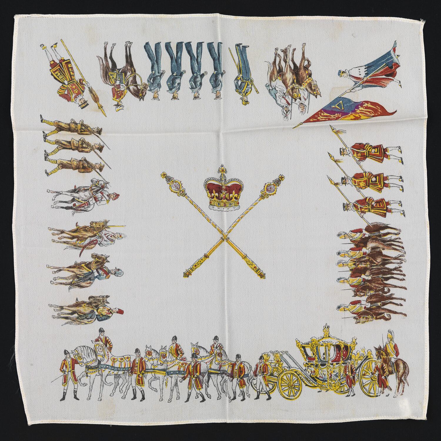 Handkerchief produced to commemorate the upcoming coronation of King George VI, held in 1937. He became king after the abdication of his brother Edward the previous year.