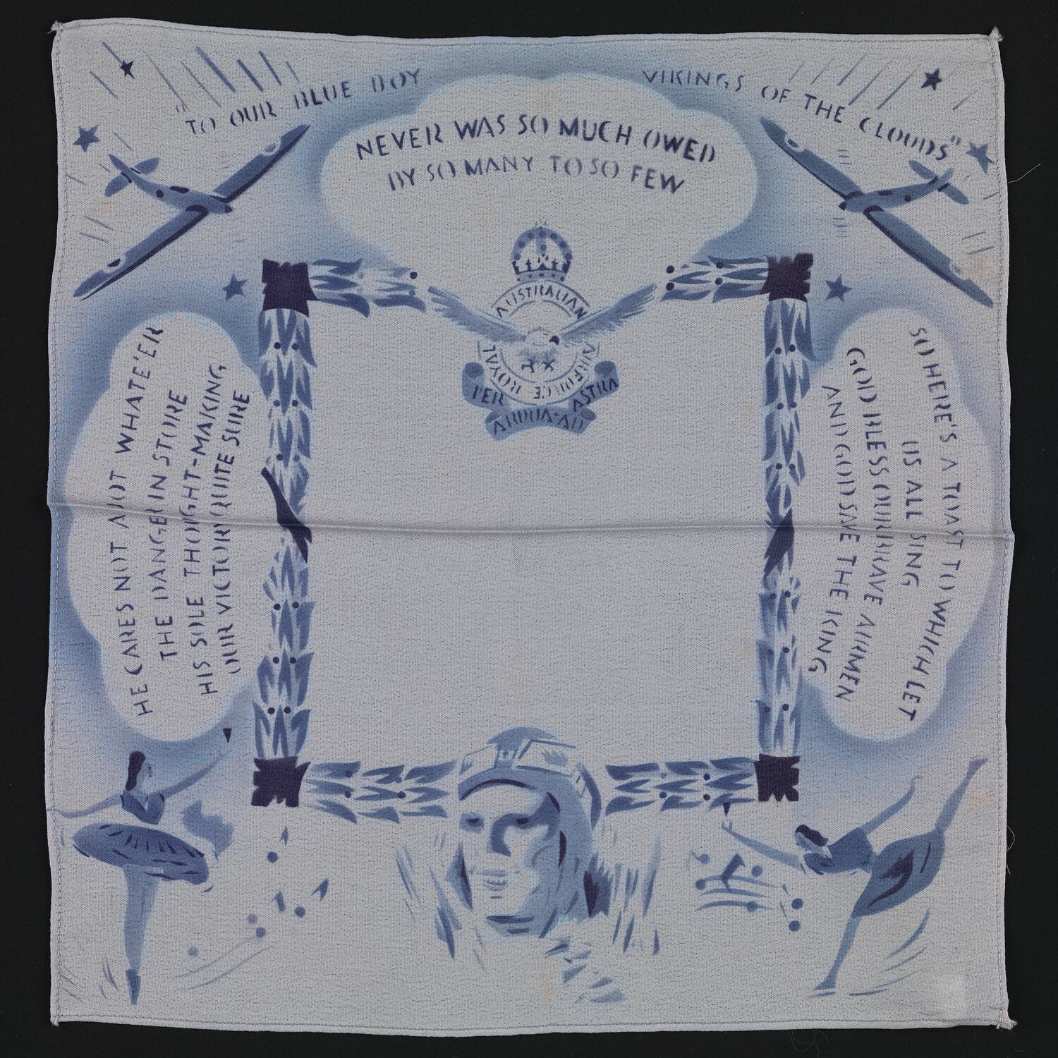 Printed on front: TO OUR BLUE BOY VIKINGS OF THE CLOUDS/NEVER WAS SO MUCH OWED/BY SO MANY TO SO FEW.
