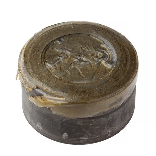Metal cylinder with intaglio design for obverse of medal. Wax coating.