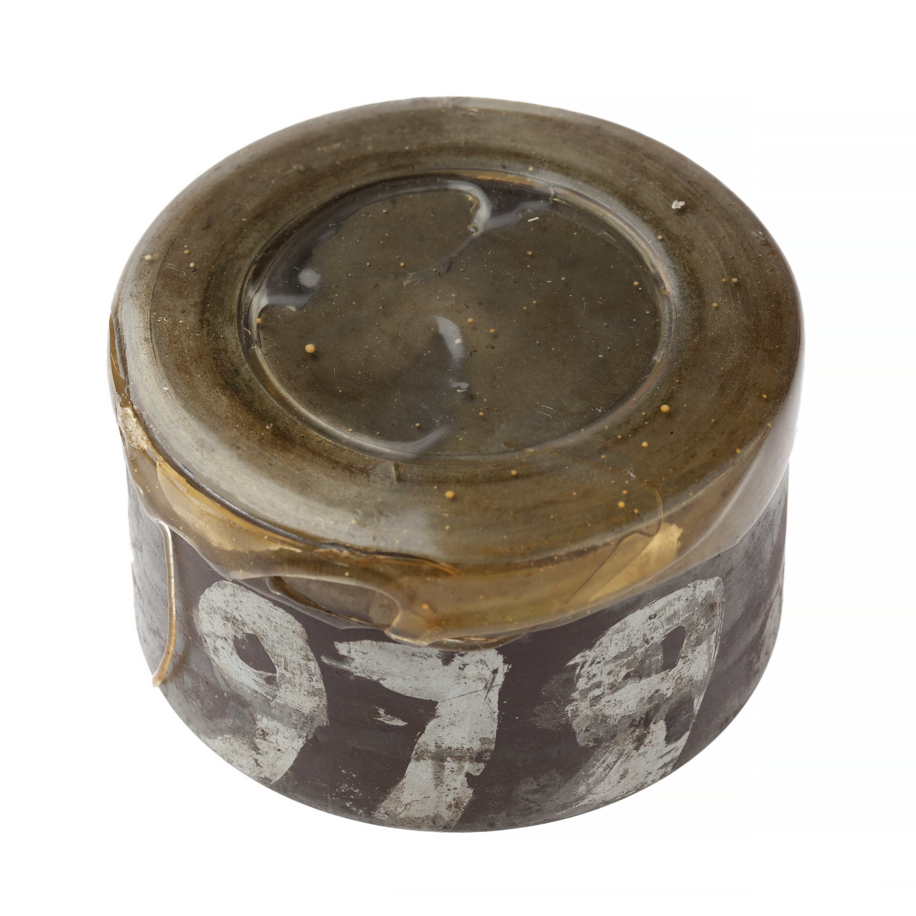 Metal cylinder with circular intaglio section for a medal. Wax coating.