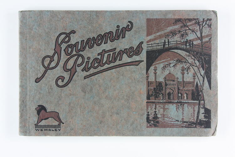 Printed on front cover in red ink: Souvenir/ Pictures; WEMBLEY Printed on inside front page: SOUVENIR/ PICTURES/ BRITISH EMPIRE EXHIBITION/ WEMBLEY/ 1925 Handwritten inscription, pencil, title plate: From h. Langdon/ Half Moon hm /Paignton England