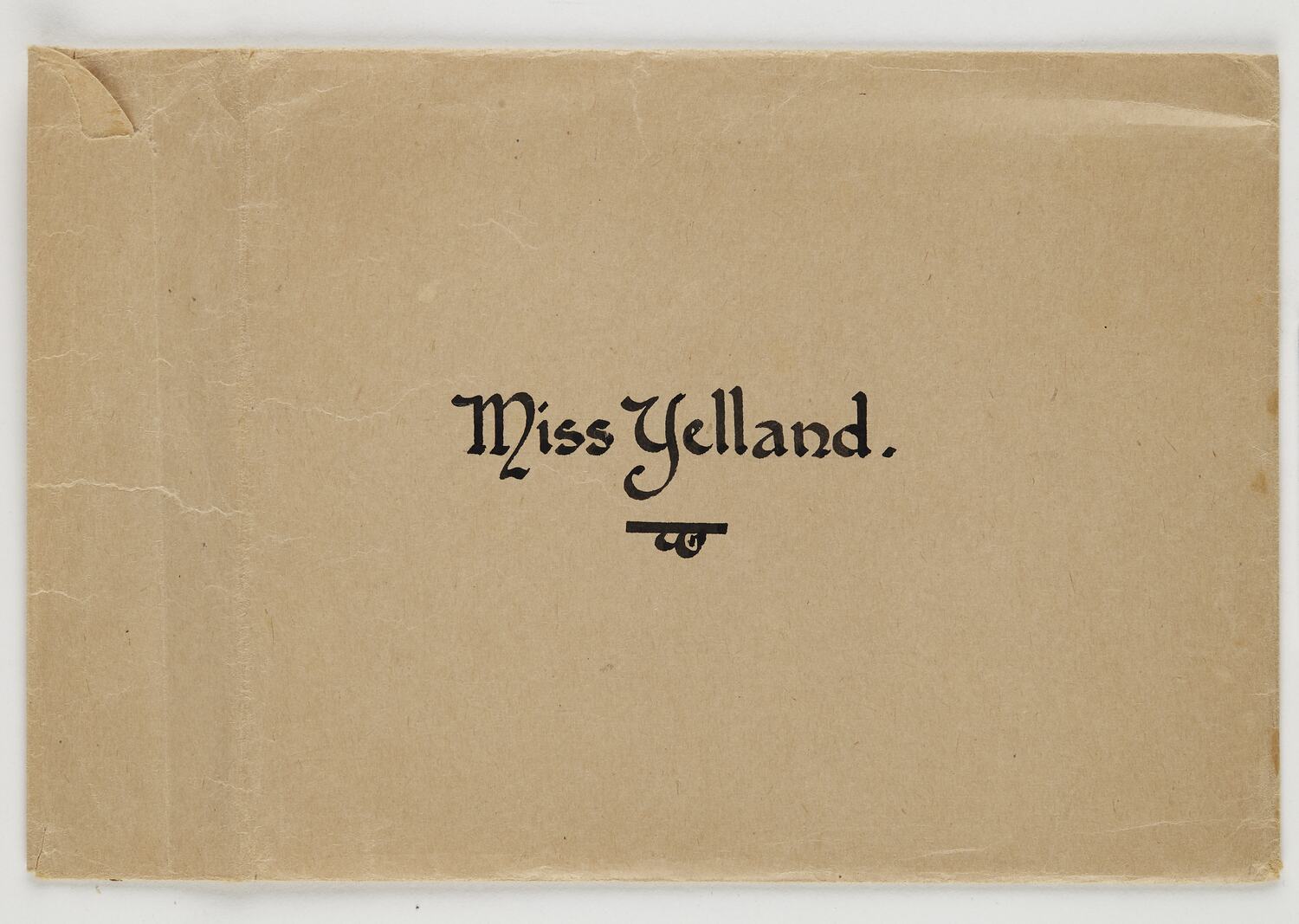 Plain brown envelope with handwritten name in black ink on front, in calligraphic serif font.