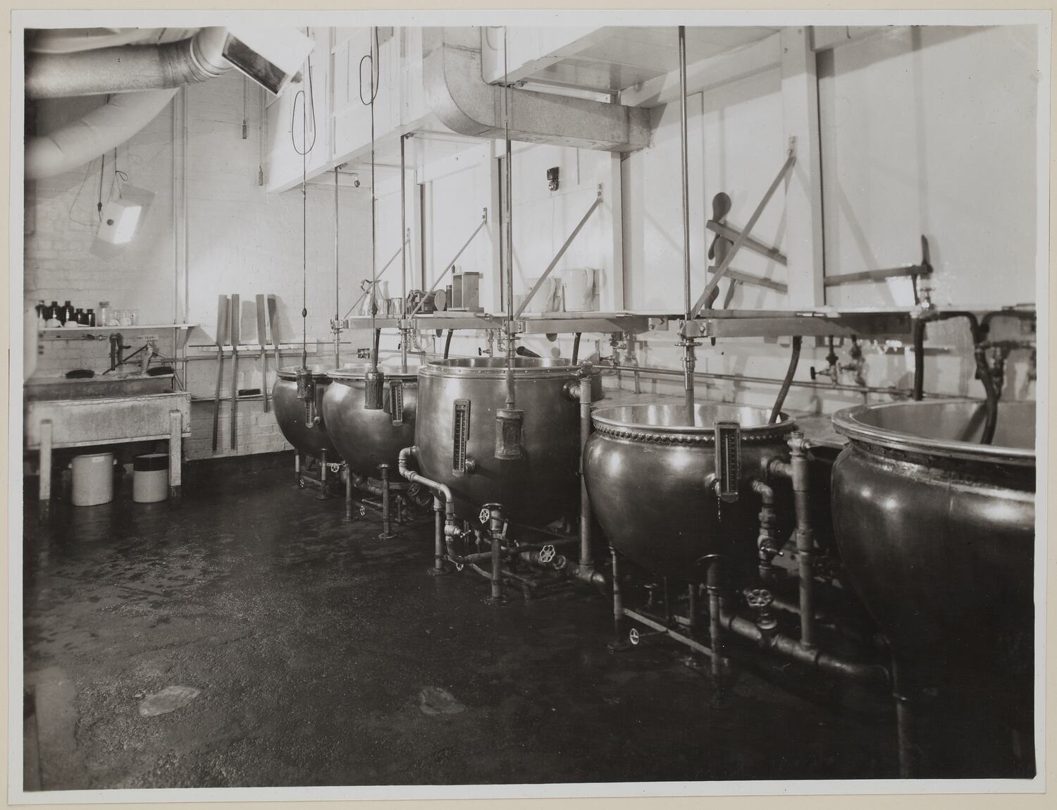 Monochrome photograph of the finishing room in the old Emulsion Department at Kodak Australasia Pty Ltd, Abbotsford. The room was in use until May, 1942.