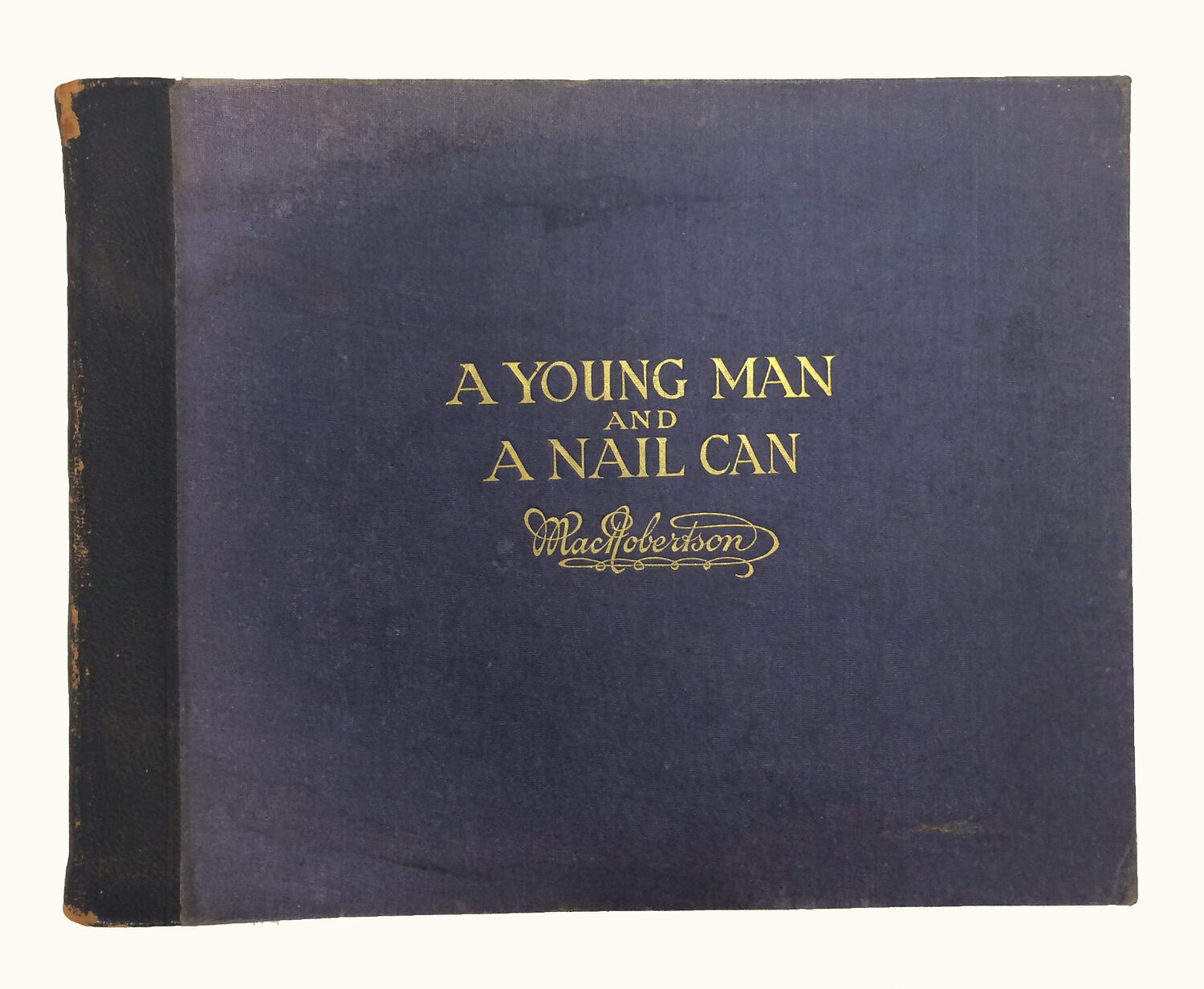 Text, front cover: A YOUNG MAN/AND/A NAIL CAN/MacRobertson. Signature inside, in pencil: 'Mr. Philip Barker / With Compliments / MacRobertson'.