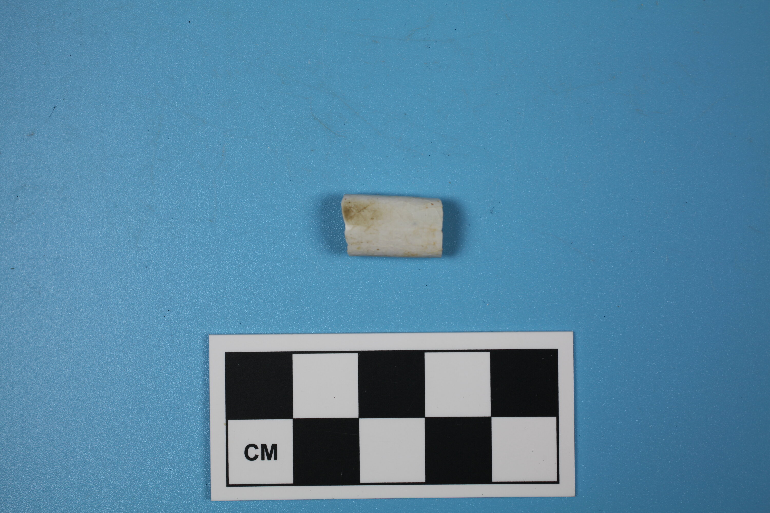 One whiteware tea cup handle fragment.