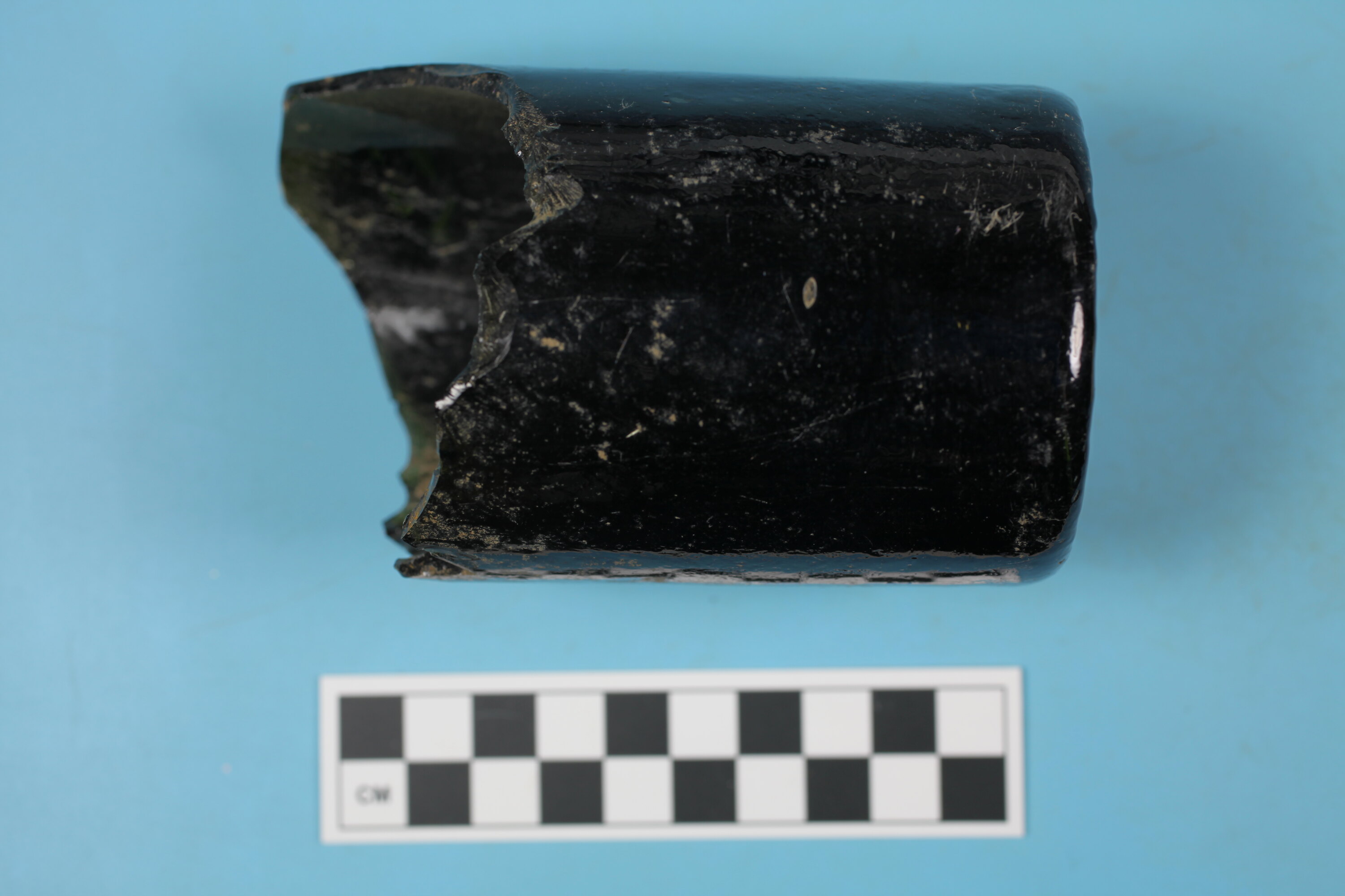 One body/base fragment of oilve green beer/wine bottle. Dip mould, separate base, probably Rickett's type. Embossed on base: W & (J) C