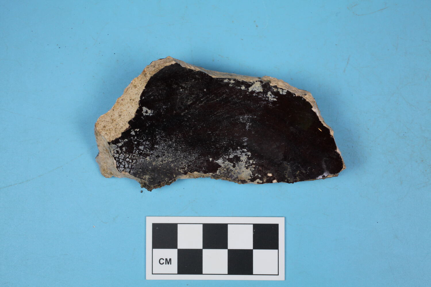 One earthenware base fragment. Possible a teapot or other kitchen or food preparation and storage vessel. Brown glazed. Cream ware. Possible moulded decoration present.