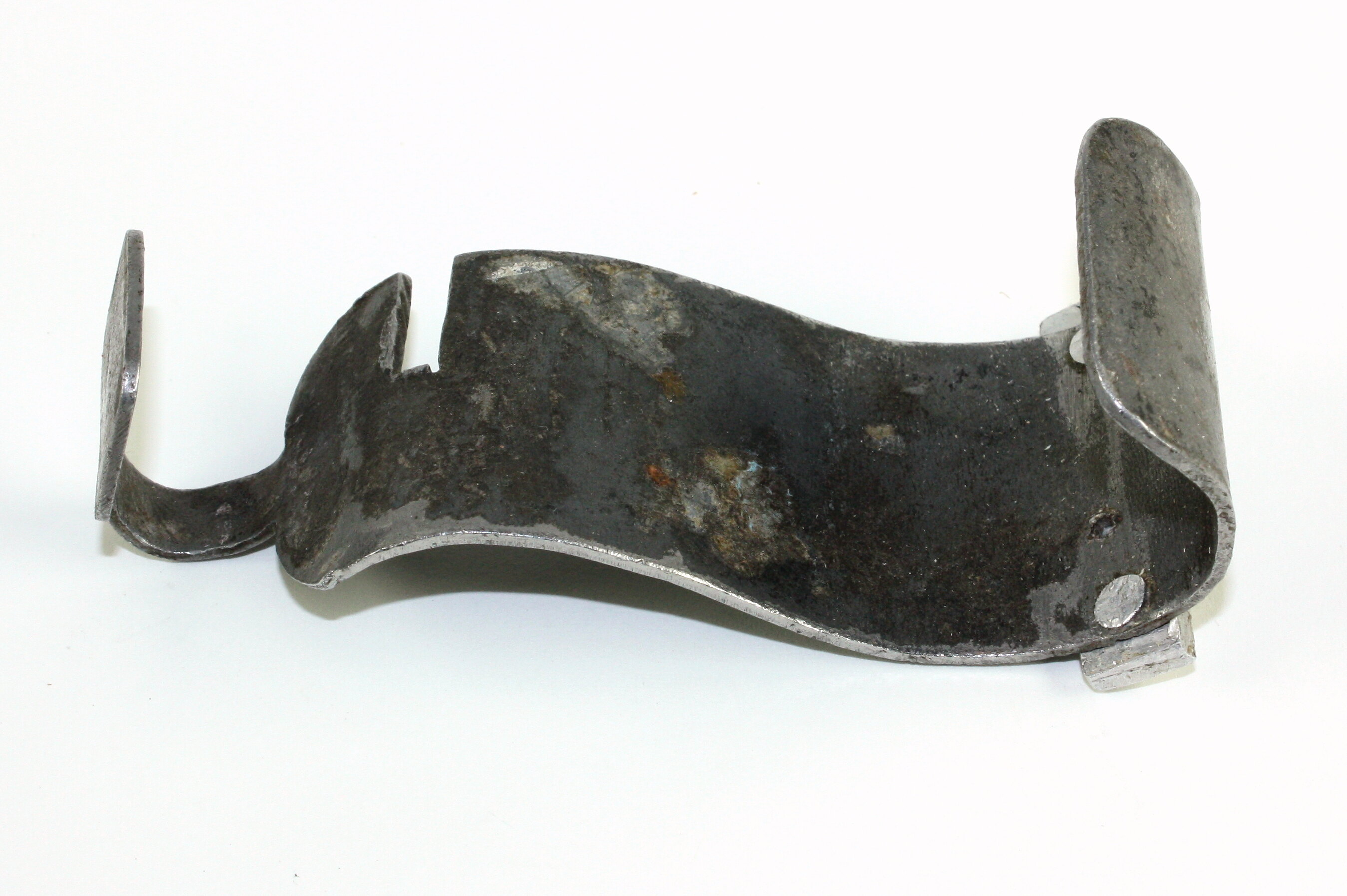 This tool was made by Doug Kite from repurposing a holder used for roof guttering. This tool cuts an angle on the edge of leather braid and helps the leather braid sit flat.