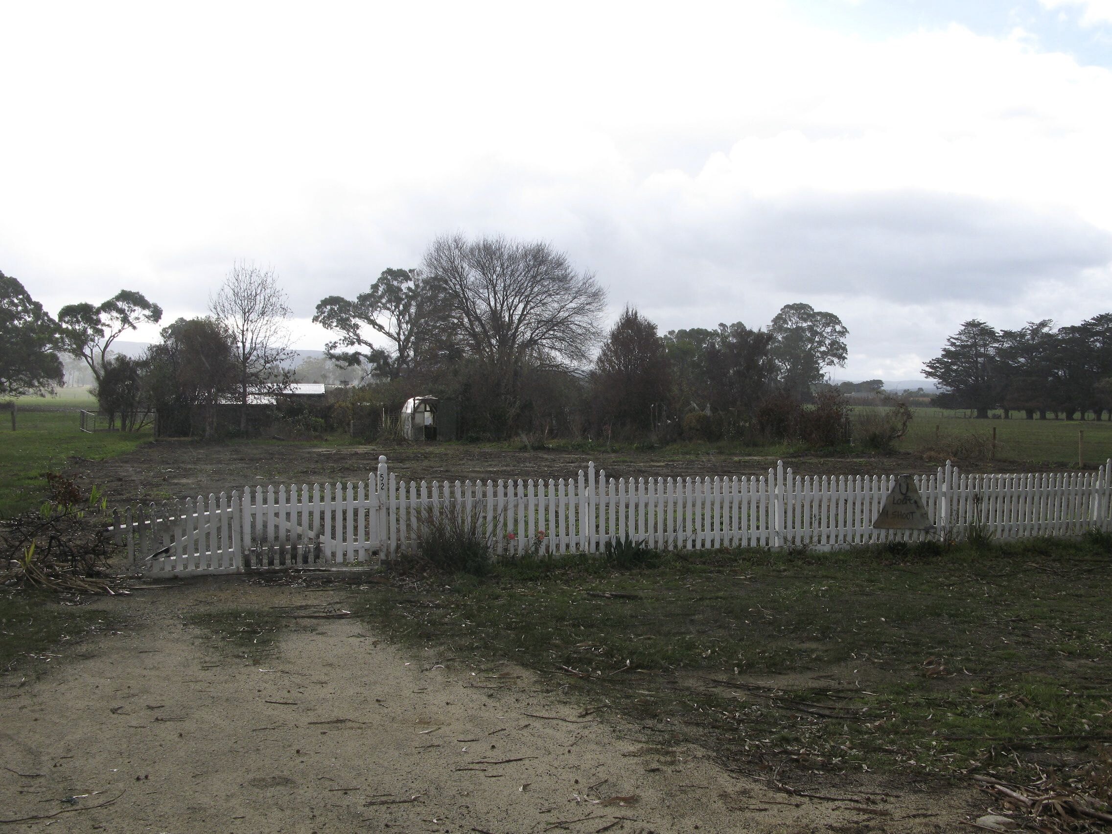 Rod Coomber used charcoal from the burnt remains of his parent's home and a bit of scrap metal to create this sign as a warning to looters, and hung it on the unburnt white picket fence. He camped on the site that night, with a gun, and observed a number of cars without headlights surveying the burnt home sites in the early hours.