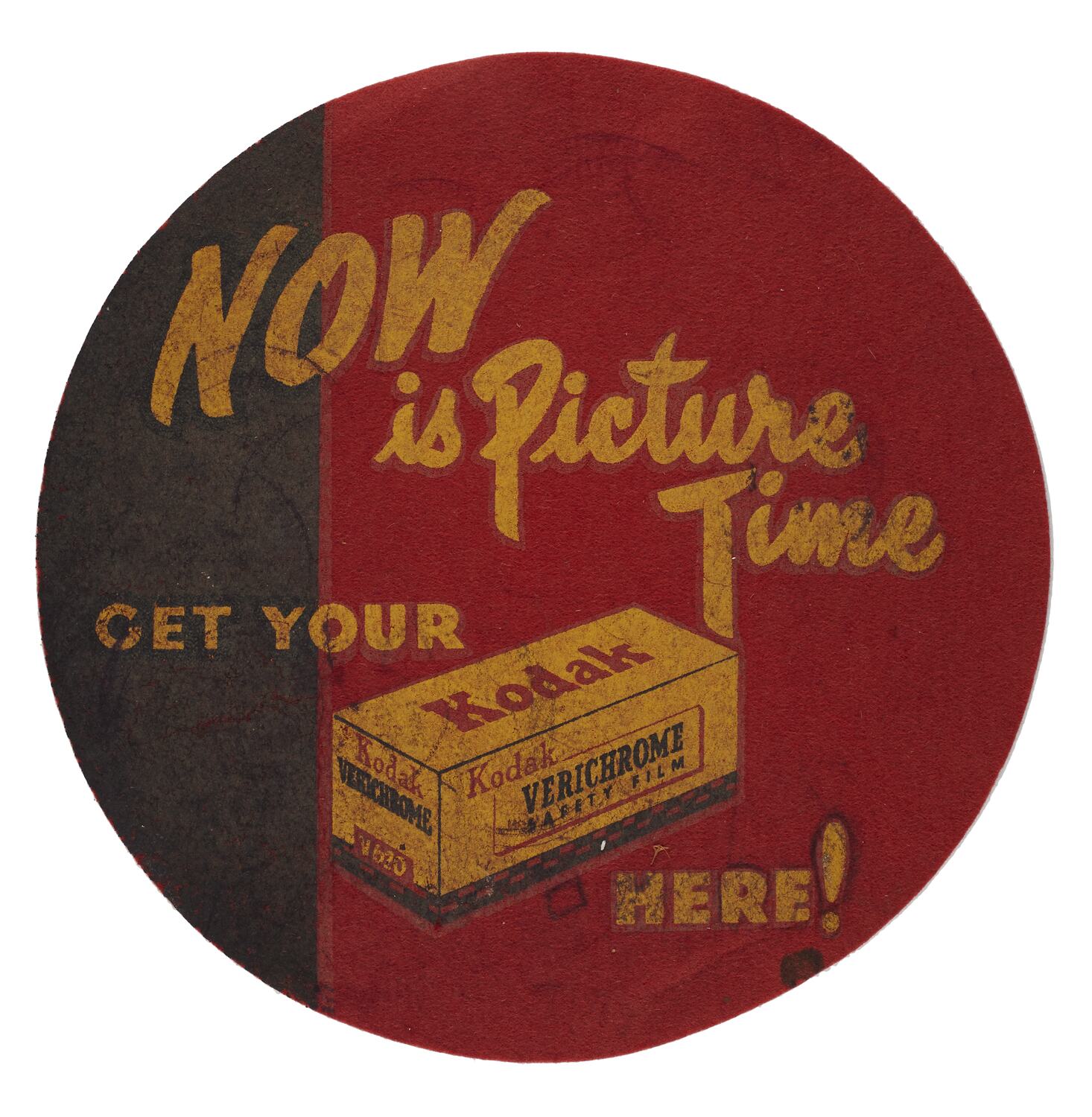 Printed, yellow ink: 'NOW / is Picture / Time / GET YOUR / [Kodak Verichrome] / HERE!'
