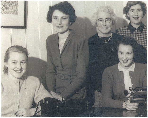Others pictured include some of the following women: Jean Jeffries, Dorothy Jeffries, Betty Coates, Norma Peck and 'Miss Parmentil'.