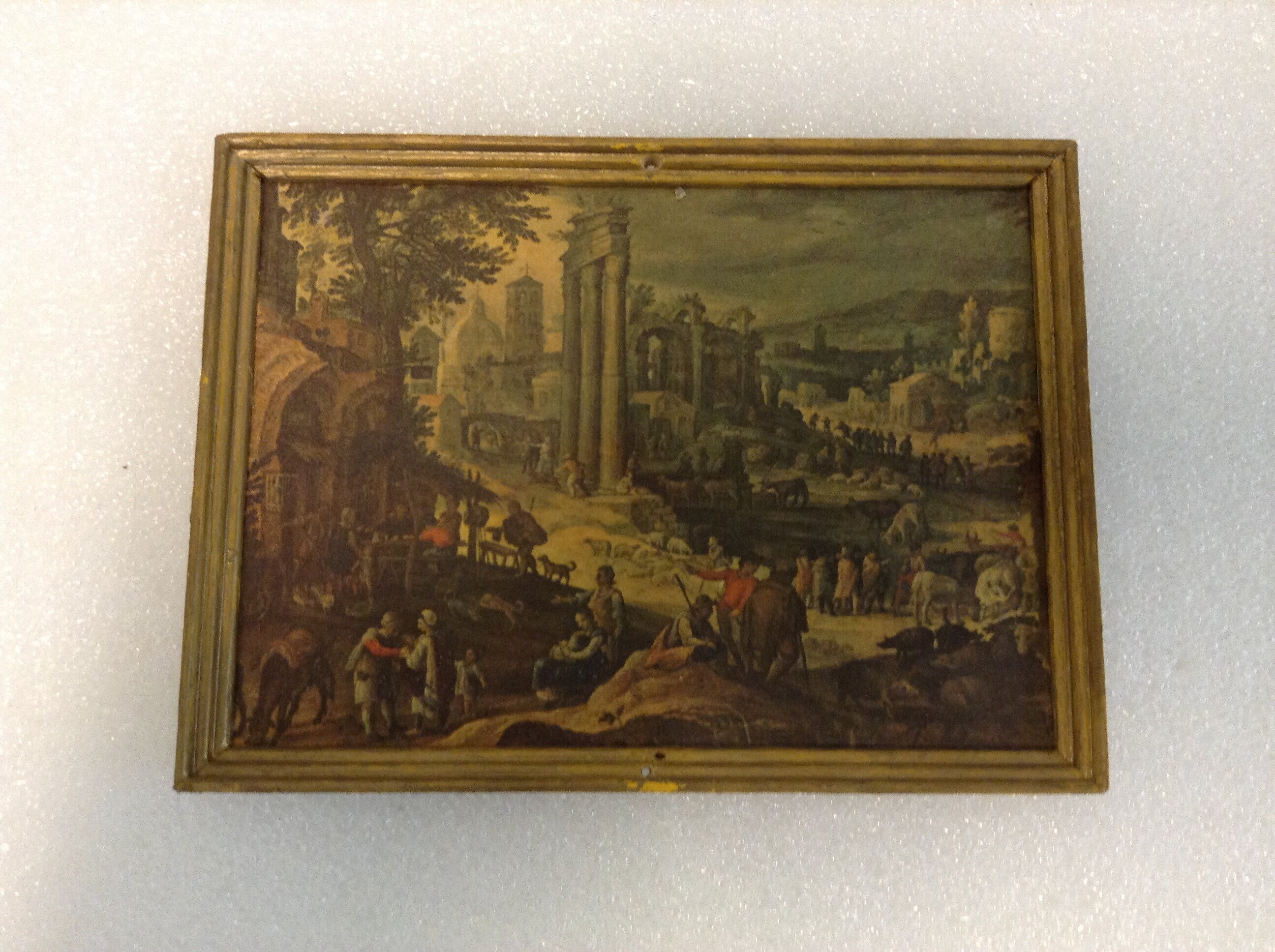 Framed reproduction of a landscape painting, with moulded gold frame.