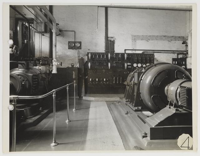 Hand written on a sticker attached to the front of the photograph; '4' Hand written on the back of the photograph; 'Abbotsford.' Typed on a sticker attached to the back of the photograph; 'MAINTENANCE / 4. Power House.'