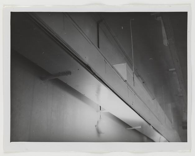 Black and white photograph featuring a close up of the air ducts in drying alley of the film coating department in the Kodak Australasia Pty Ltd factory, Abbotsford.
