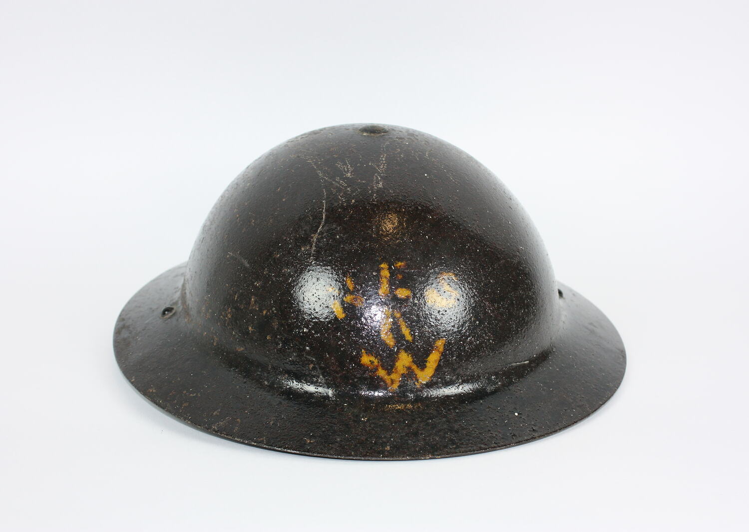 Metal helmet inscribed 'NES/W', most likely worn by a National Emergency Services warden. National Emergency Services wardens were trained to respond to a wide range of emergency situations during World War II, including floods, fires or epidemics, unlike the ARP (Air Raid Precautions) wardens, who had a specific area of responsibility. ('National Emergency Service', South Coast Times and Wollongong Argus, 12 May 1939).