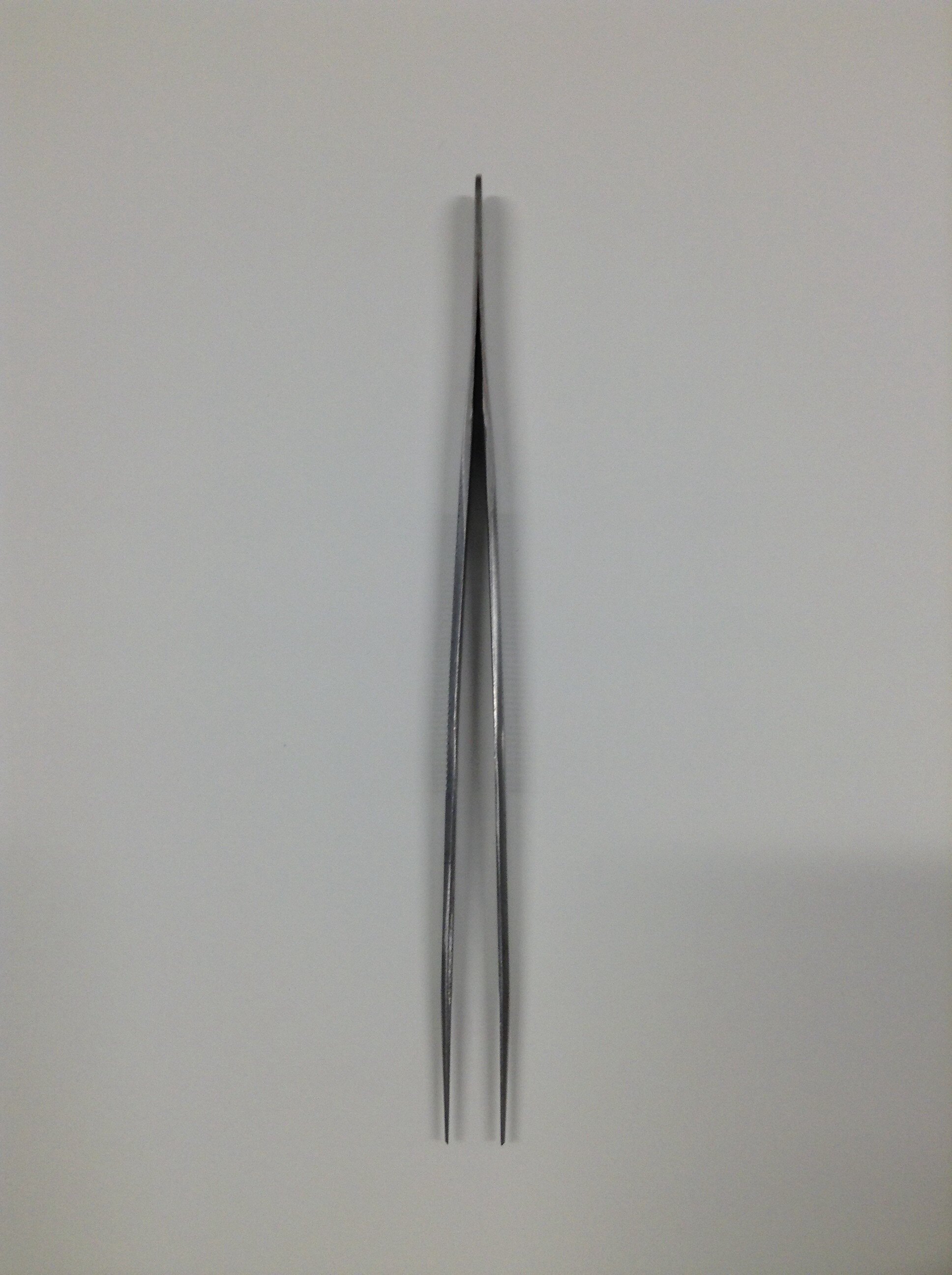Stainless steel jewellery making tweezers, used to securely grip small diamonds and other gemstones during the jewellery making process. These tweezers were used by George Kyriakides as part of his collection of tools used in his jewellery-making trade from 1949 to 2006.