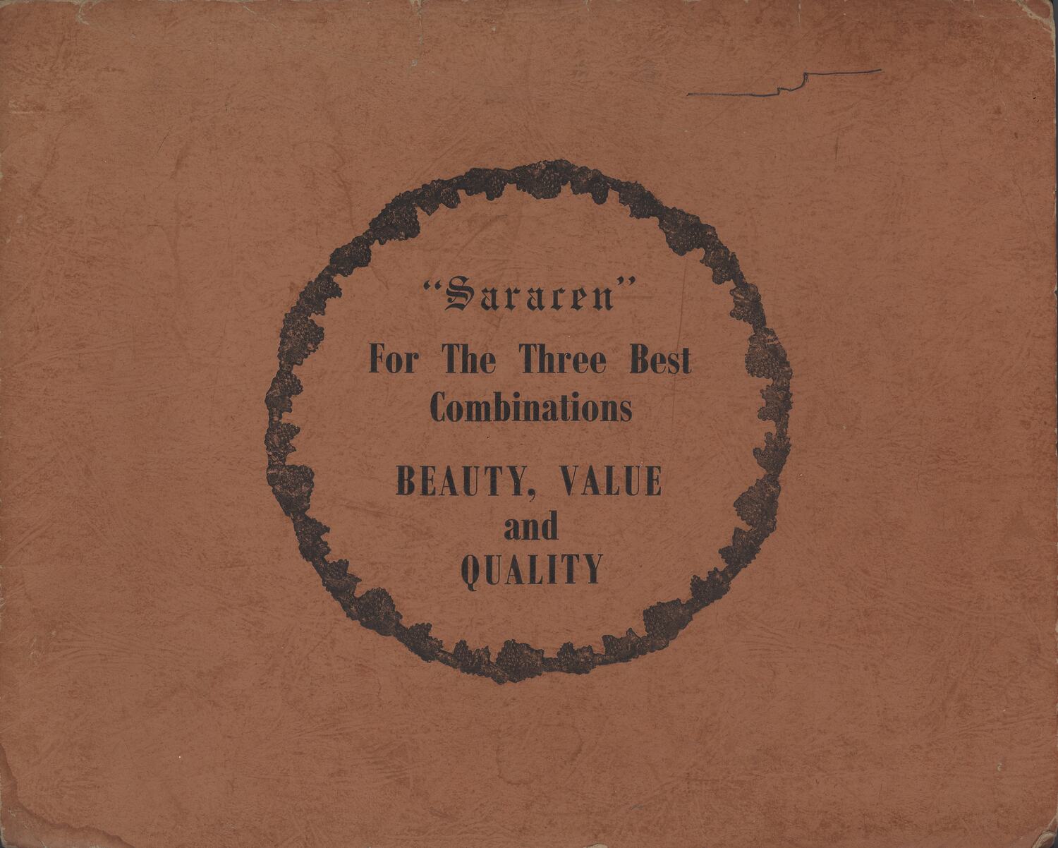 '"Saracen" / For The Three Best / Combinations / BEAUTY, VALUE / and / QUALITY'.