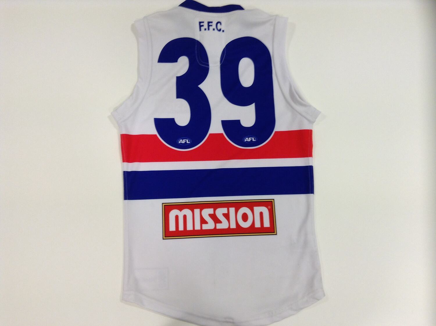 Guernsey worn by Jason Johannisen during the 2016 AFL season for the Western Bulldogs Football Club. Jason was born in Johannesburg in South Africa in 1992, and he migrated to Perth in Western Australia with his family in 2000. His mother Sonya was born in Zambia and his father Eldrid in Durban, South Africa. He commenced playing football at the age of 15 for suburban clubs and was drafted by the Western Bulldogs Football Club in 2012, debuting that same year. He is the first Australian Football League player of South African descent.