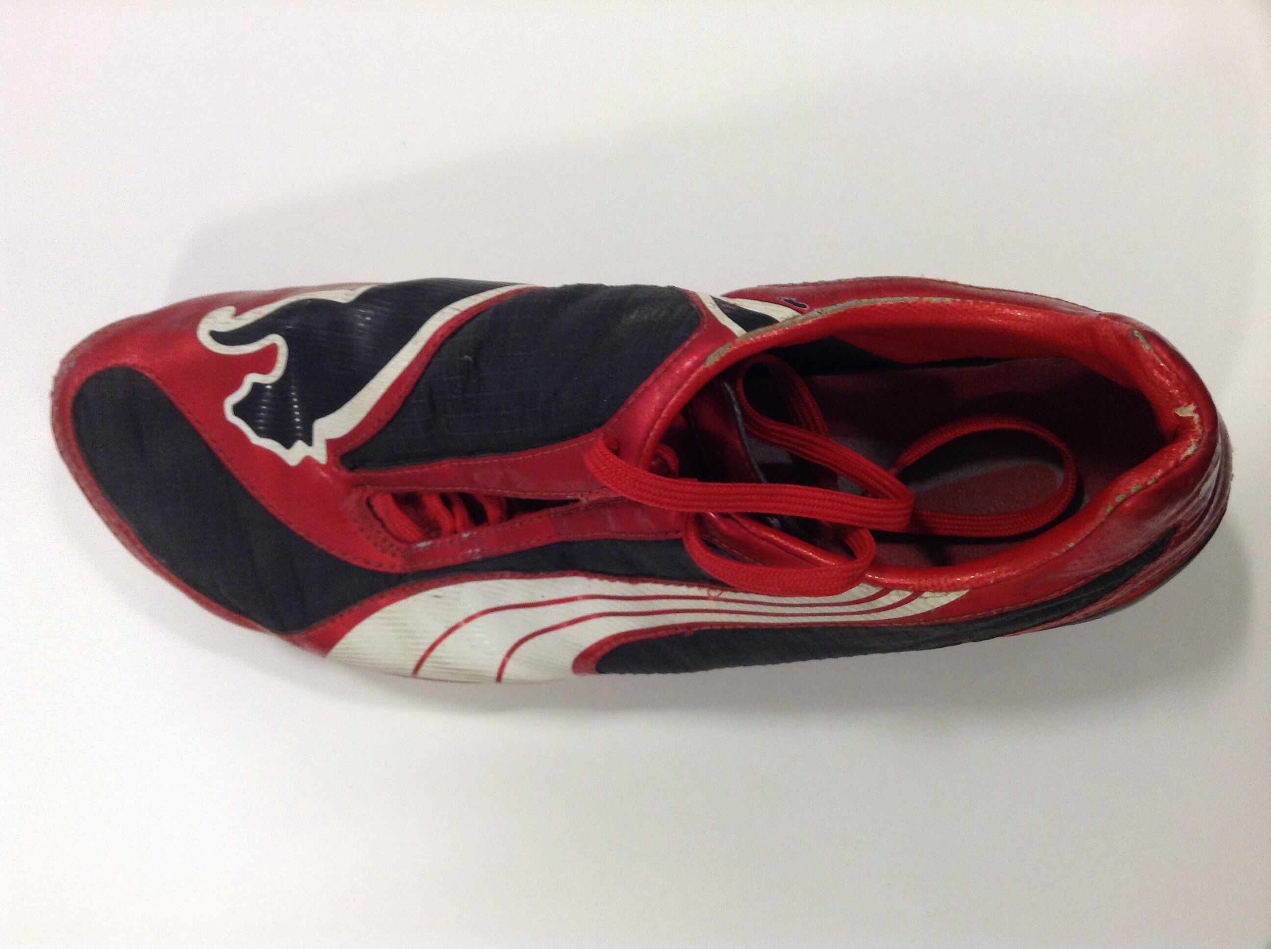 Football boot (left) worn by Jason Johannisen while playing for the Willetton Junior Football Club in Perth between 2001 and 2009. Jason was born in Johannesburg in South Africa in 1992, and he migrated to Perth in Western Australia with his family in 2000. His mother Sonya was born in Zambia and his father Eldrid in Durban, South Africa. He commenced playing football at the age of 15 for suburban clubs and was drafted by the Western Bulldogs Football Club in 2012, debuting that same year. He is the first Australian Football League player of South African descent.