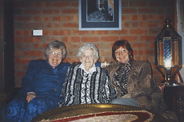 Photograph of Hazel, Lucy & Merle Hathaway at Fahan's restaurant in Buninyong, Victoria.