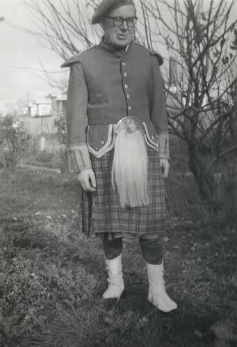 Photograph of Stanley Hathaway in Brigadoon costume which was put on by the Ballarat Light Opera Company.