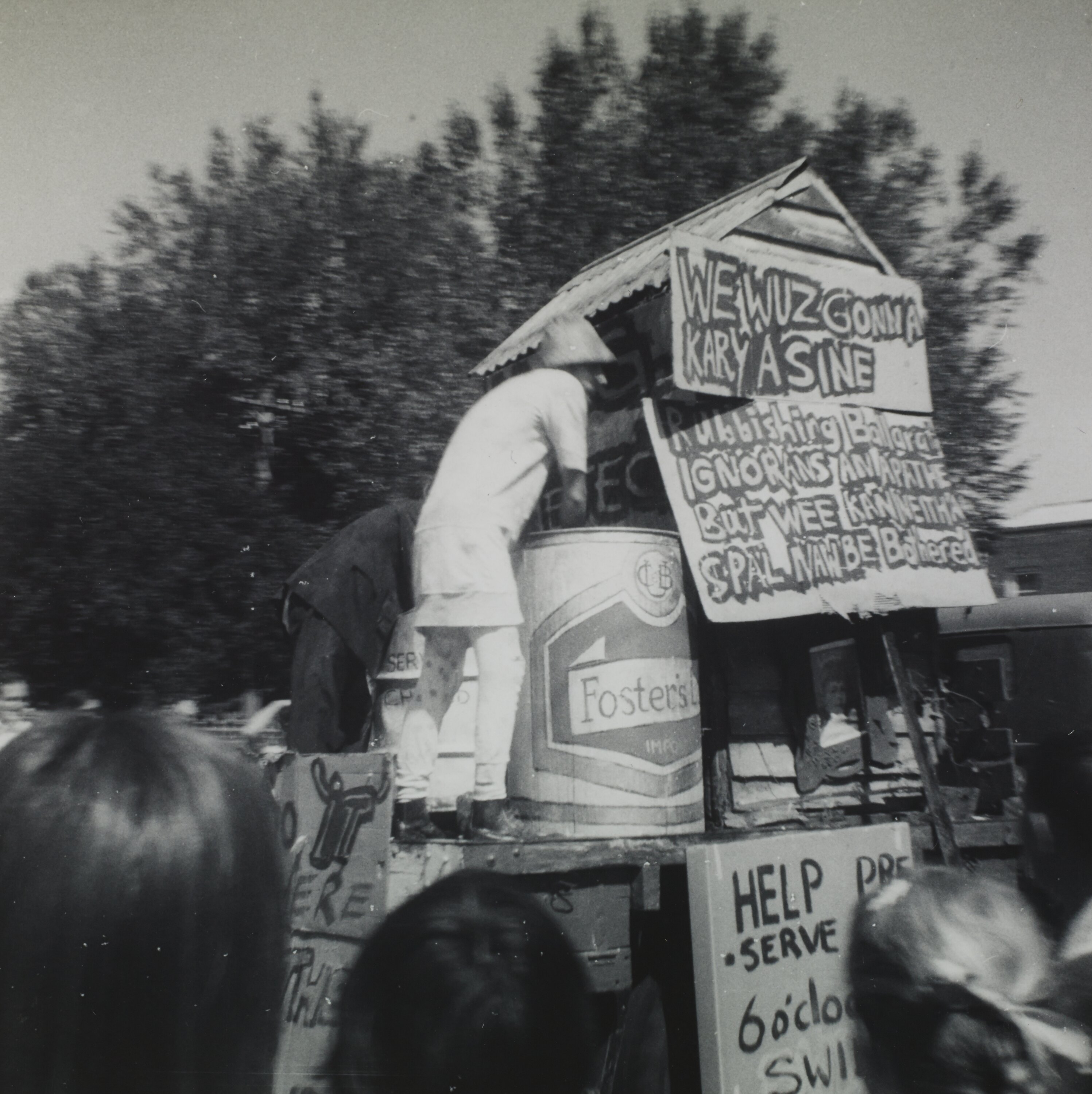 Photograph of School of Mines Ballarat students with their float at the Begonia Festival in Ballarat.