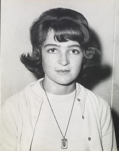 Photograph of Merle Hathaway after winning St Johns Competition Intermediate Aggregate, Ballarat, 1960