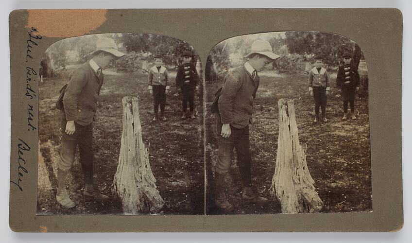This stereograph is part of the Kodak collection of products, promotional materials, photographs and working life artefacts collected from Kodak Australasia in 2005, when the Melbourne manufacturing plant at Coburg closed down.