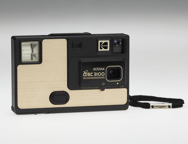 On the front of the camera: 'KODAK / dISC 3100' On the back of the camera: 'a dISC camera / MADE IN U.S.A. BY EASTMAN KODAK COMPANY'