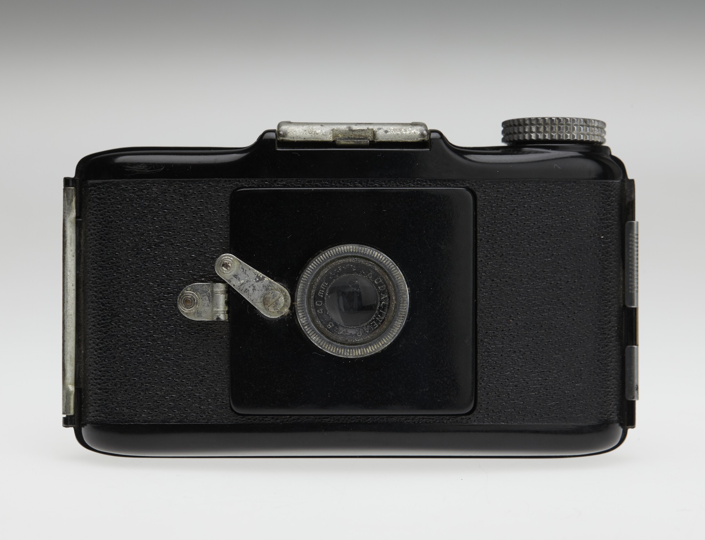 Bantam camera with a telescoping, 40mm f8 lens, manufactured by Eastman Kodak Company. This particular example was inside its original box.
