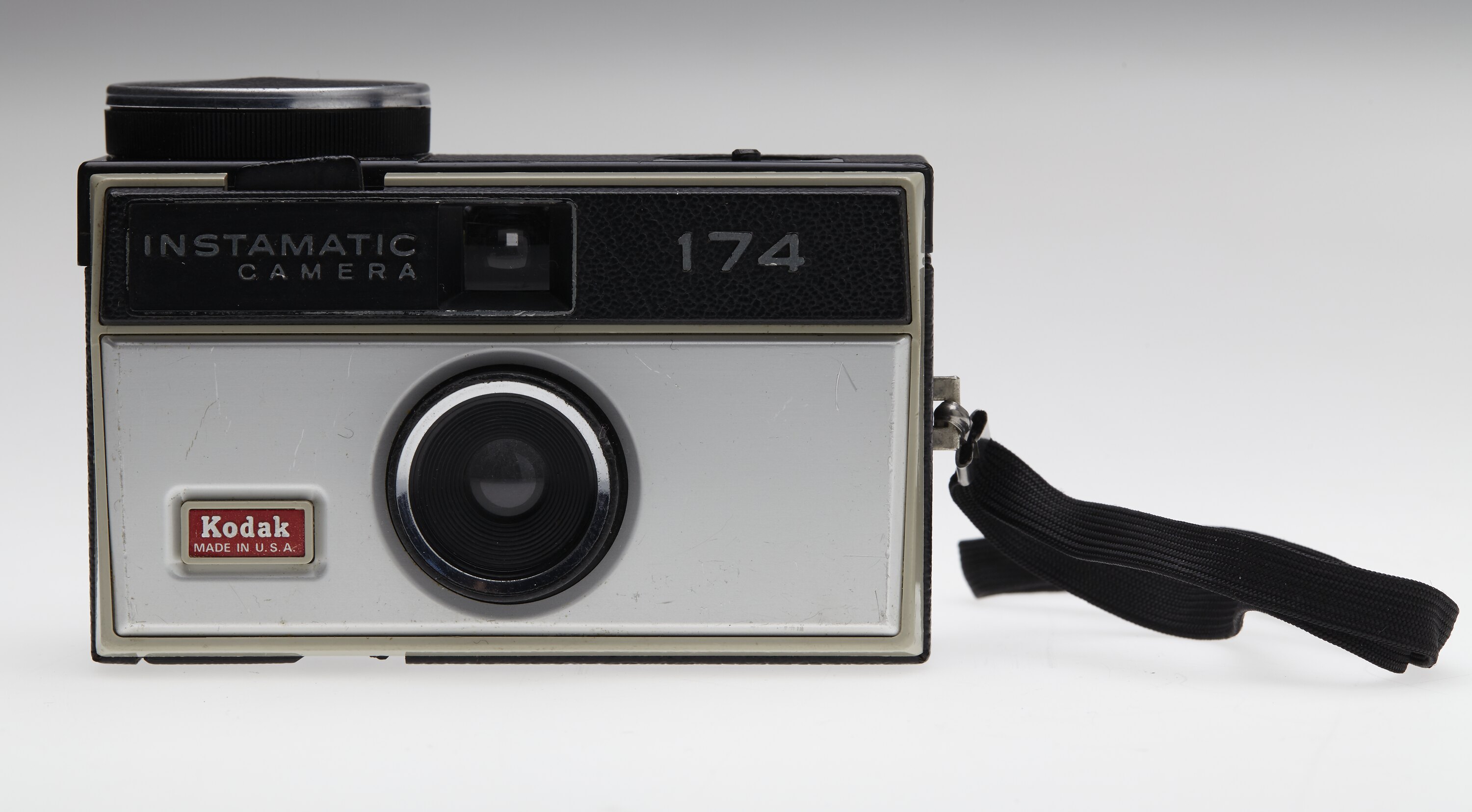 Instamatic 174 camera with a flash cube connector, manufactured by Eastman Kodak Company.