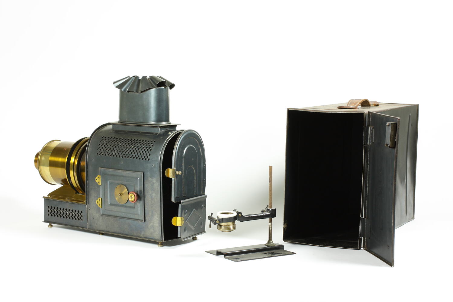 Illuminant for a magic lantern projector. The projector was distributed by Maison de la Bonne Presse, a Paris publisher of Catholic journals and newspapers. In 1896 a 'visual education' department was created as part of the company, which, like its publishing department, was used to counter secularism in French society. The 'visual education' department distributed magic lanterns, cinema projectors and the associated visual images.