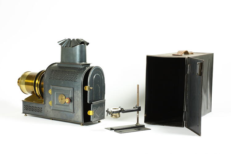 This lantern projector is part of the Francis Collection of pre-cinematic apparatus and ephemera, acquired by the Australian and Victorian Governments in 1975. David Francis was the curator of the National Film and Sound Archive of the British Film Institute as well as being a co-founder of the Museum of the Moving Image in London, which was operational between 1988 and 1999.