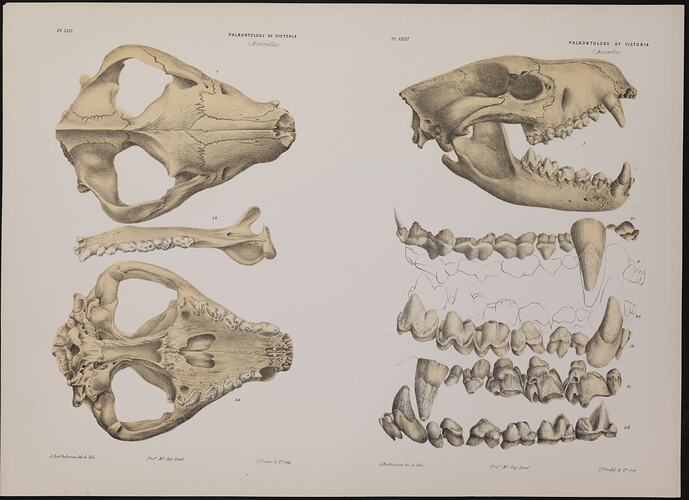 It was intended that 10 'Decades' (pamphlets with 10 plates) of the palaeontological work were published, but only seven eventuated. McCoy's disregard of financial procedures surrounding publication of the work exasperated governments. After 1870, when the museum was placed under the Public Library trustees, he struggled to acquire the government money necessary to continue publishing his 'Prodromus'. McCoy was prone to running over budget and constantly writing to fend off debtors or request more money from the Government; a situation that came to define the project's financial journey until its abrupt halt.