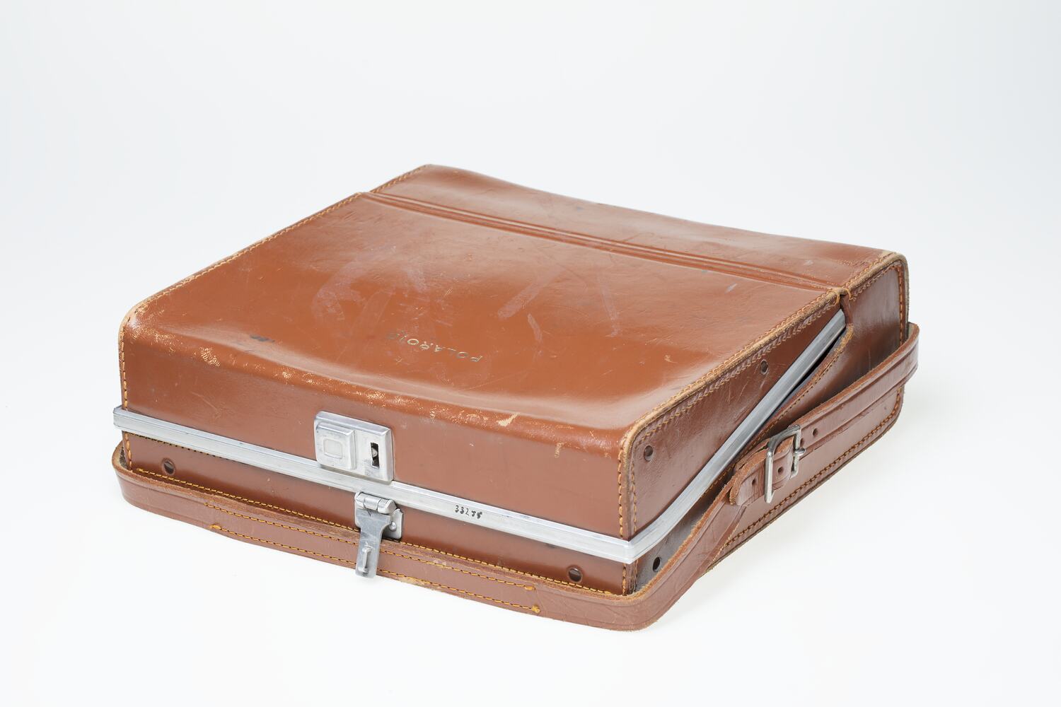 Embossed in gold lettering on front of case: 'POLAROID'.
