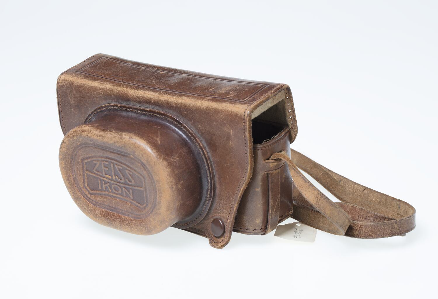 Leather camera case and shoulder strap.