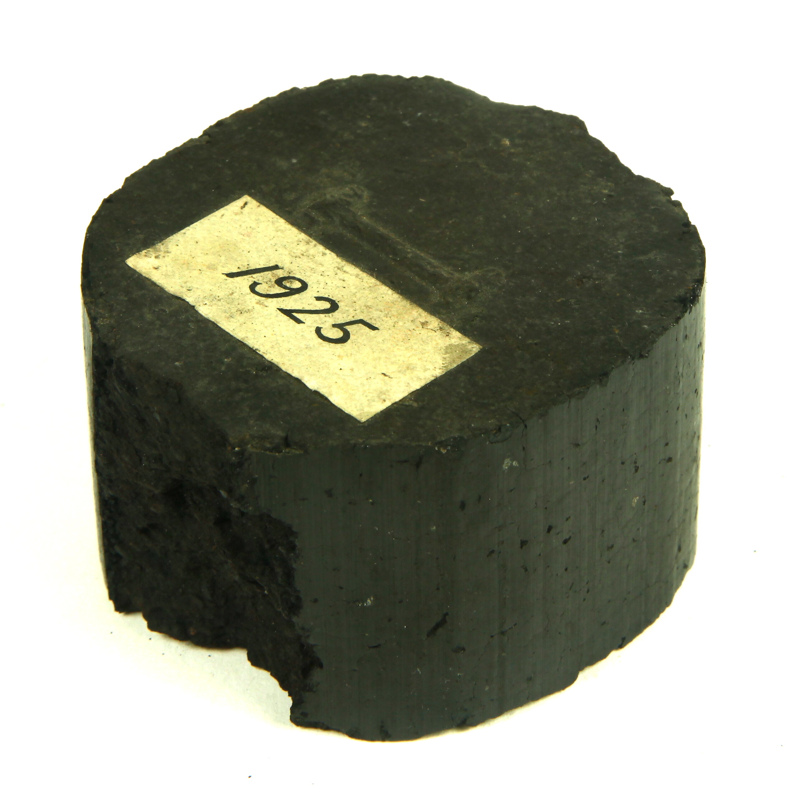 Single I-type briquette, produced for industrial use in manually hand-fired boilers and furnaces. Sample from the earliest production at the State Electricity Commission's Yallourn Briquette Works, situated in the Latrobe Valley, near Morwell, Victoria, dated 1925. Manufactured from brown coal extracted in the adjacent Yallourn Open Cut Coal Mine. Construction of the Yallourn Briquette Works commenced in mid-1922, using primarily imported German technology and equipment.The plant began trial runs in mid-November 1924 and commerical sales of briquettes commenced in February 1925, with production reaching 350 tons/day by mid-1926.