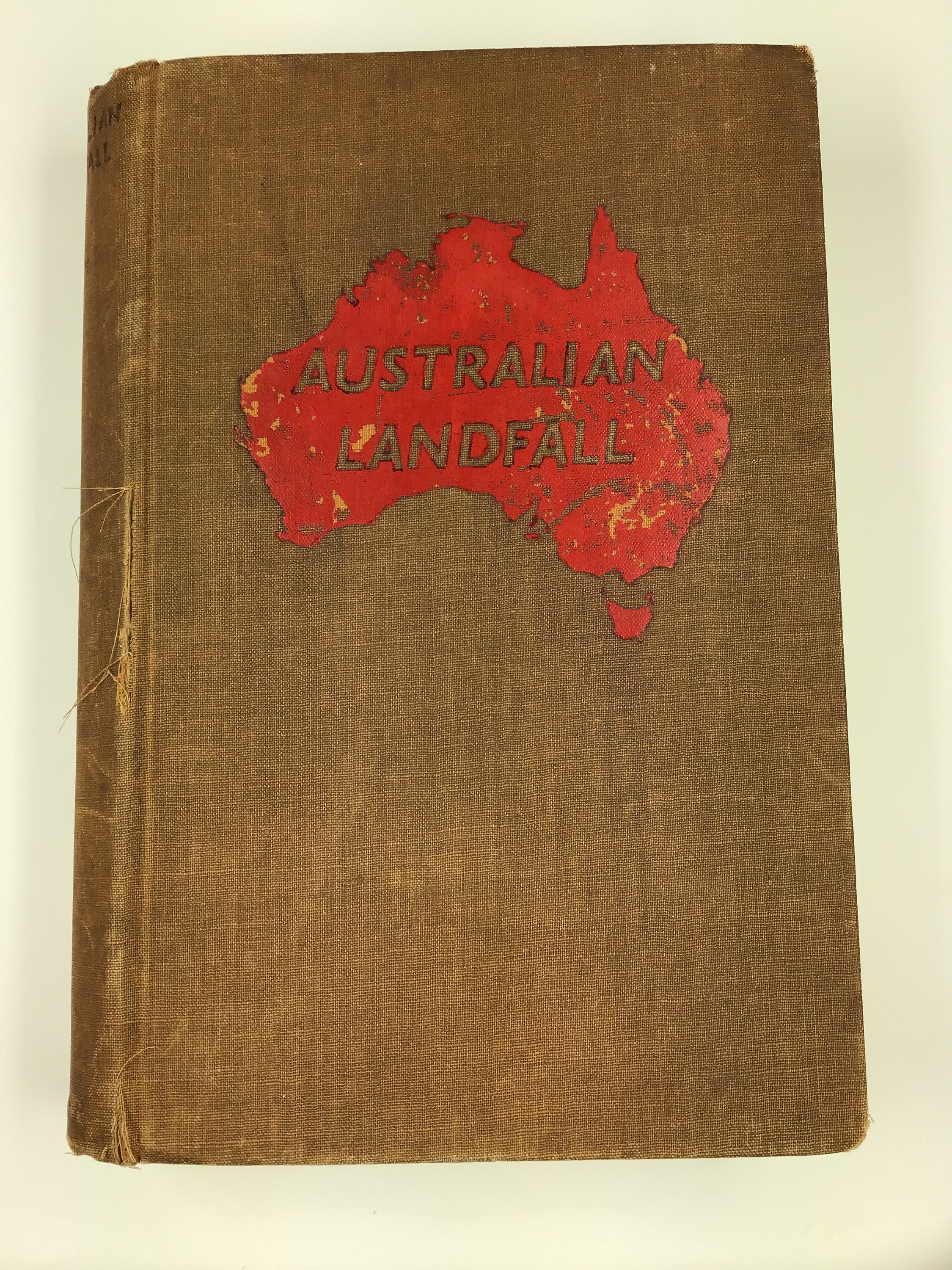 Brown hard cover book with red map of Australia and book title.
