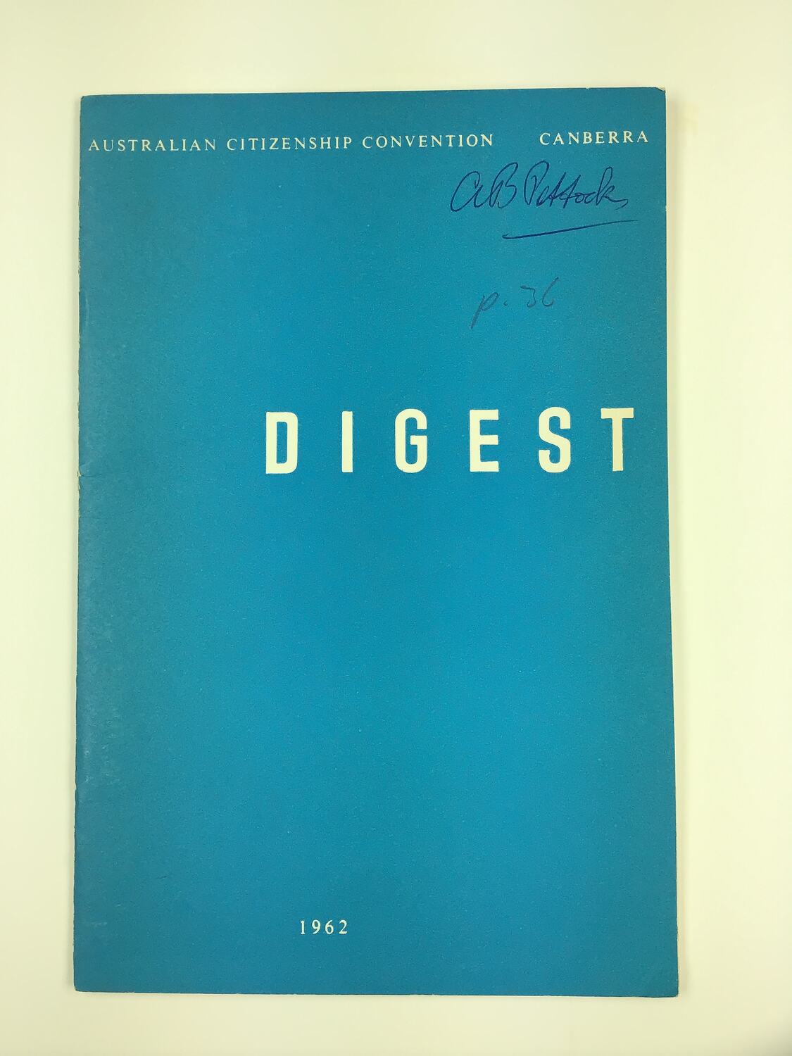 Booklet entitled 'Digest. Australian Citizenship Convention', published by the Department of Immigration, Canberra in 1962.