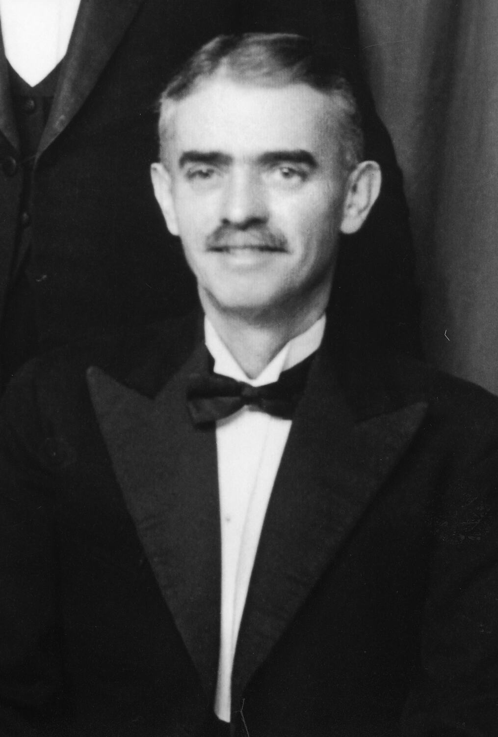 Photograph of Annibale de Marco as a young man wearing a formal tuxedo suit and bow tie, 1920.