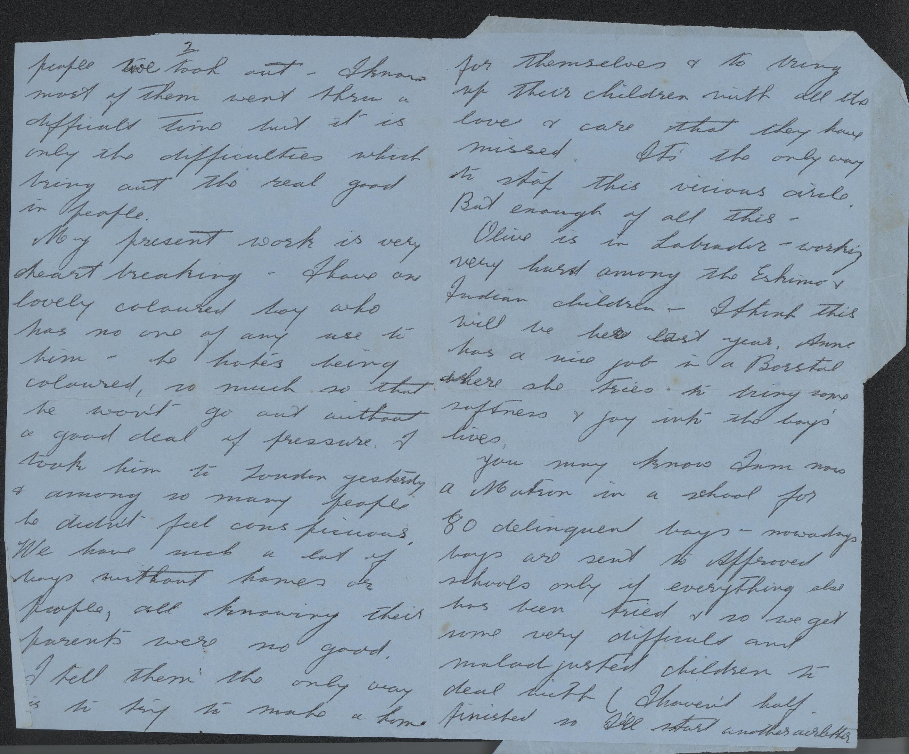 The documents are enriched by an oral history interview of the former child migrant, now in her eighties. The material covers the period before her migration as well as the lengthy period in Australia when she suffered from the ongoing impact of that migration programme. It documents her later return as an adult to England to find her family and her mental struggle with her identity. The material includes items showing the part played by local Australian social welfare organisations and their relationship to the after-care efforts of the UK National Children's Home.
